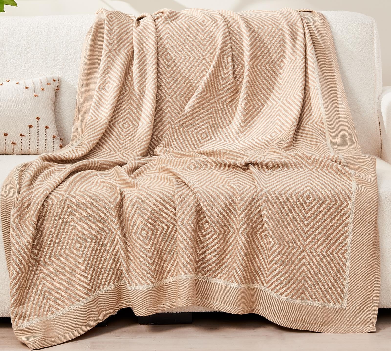 - Large Throw Blanket: Our 73' x 53' blanket is super soft and cozy, just the swaddle she needs for snuggling. It is woven with a double-sided texture, which not only looks modern and classic, but also feels great, making it the perfect gift for family and friends. Use it as a shawl outdoors or as a couch blanket or nap blanket indoors. Pair it with a pair of fuzzy socks for the ultimate in warmth and comfort.