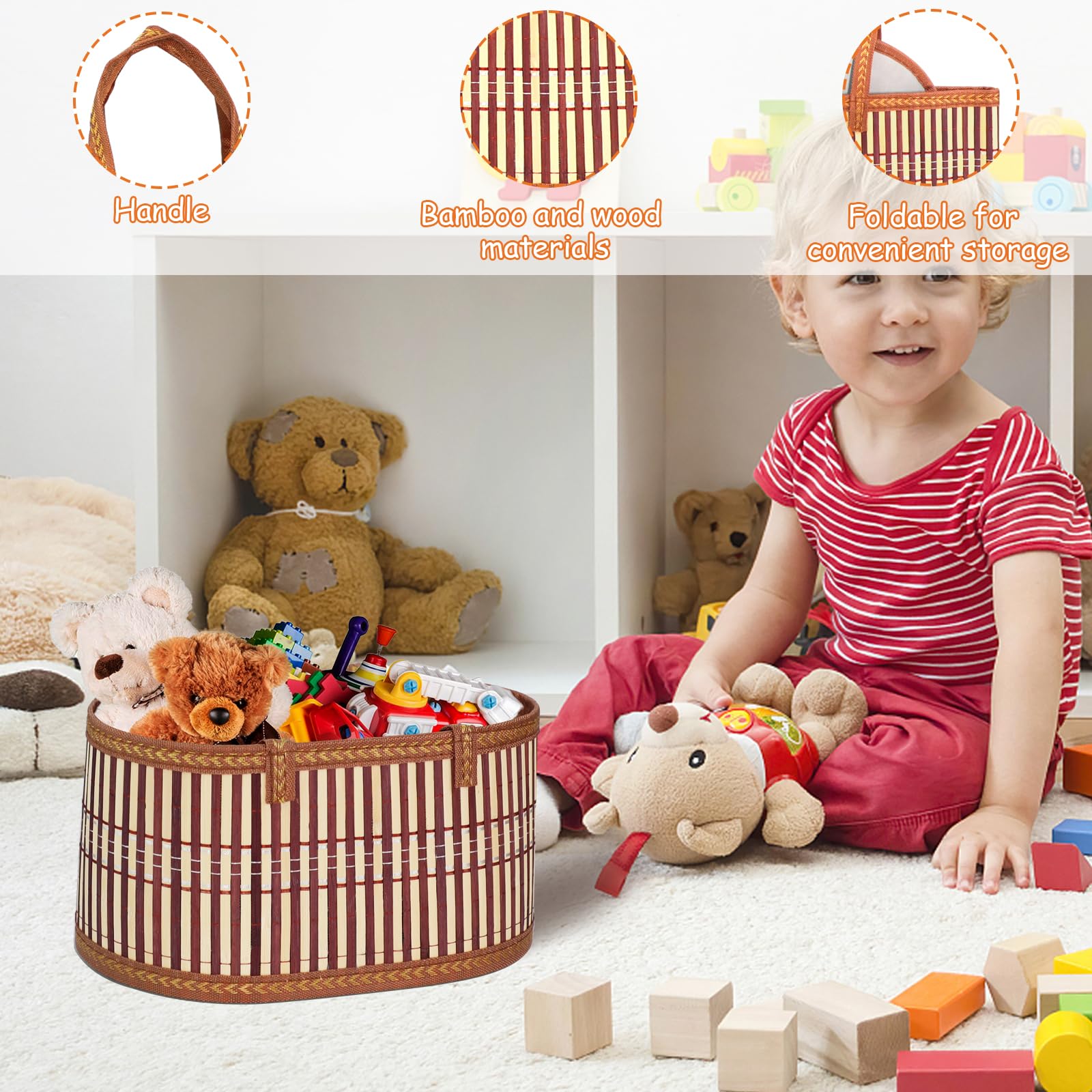 - VERSATILE USE: This woven bamboo basket's design and size make it versatile enough. It can serve as storage for toys, books, or clothes, dog cat toys basket. Its versatility makes it a must-have for any home. Widely used in living room, kids room, bathrooms, bedrooms and so on.