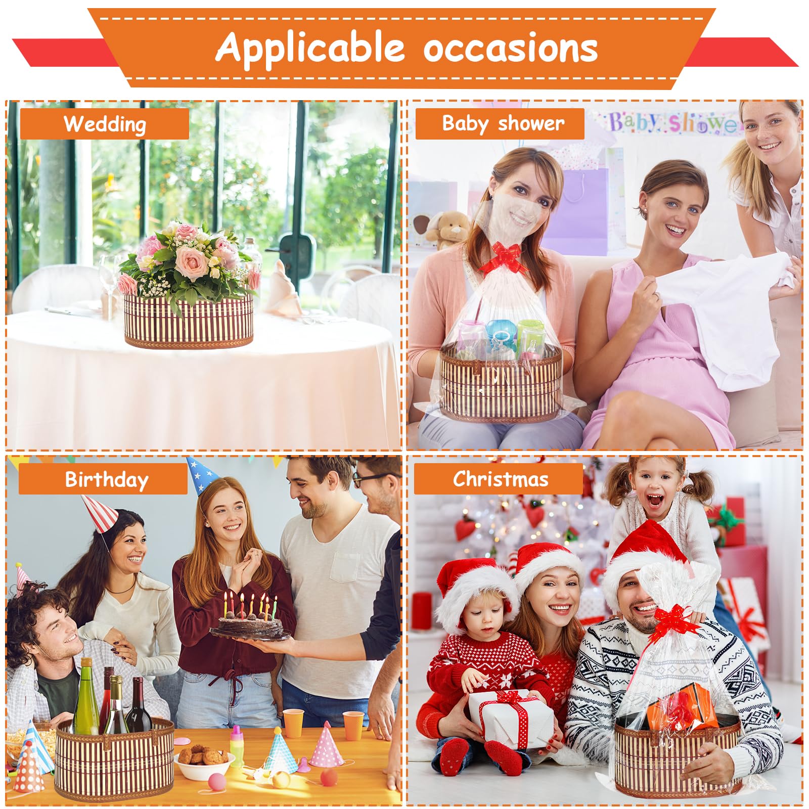 - COMPLETE RICH EMPTY GIFT BASKET SET: The gift basket set includes 3 bamboo empty gift baskets, 3 high quality clear bags, 3 red folded bows, 3 gift cards, abundant in abundance, they make great holiday decorations and make your gift unique.