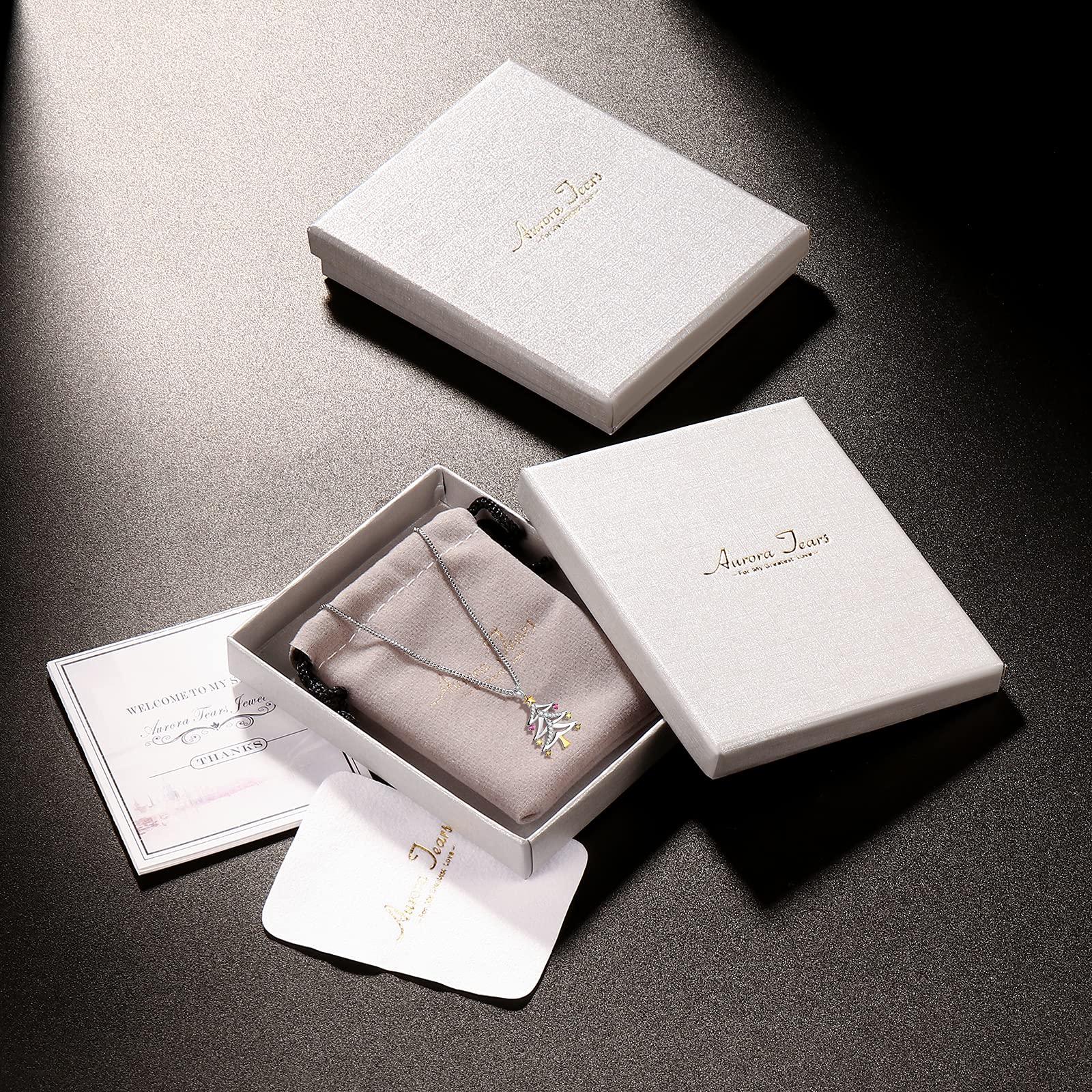 Aurora Tears 925 Sterling Silver Christmas Tree Pendant,Christmas Necklace Costume Jewelry Gift CZ Crystal Holiday Festival Jewelry Plant Pendant for Women