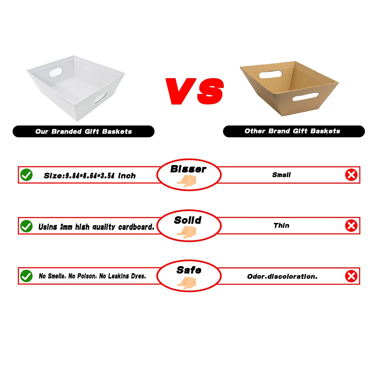 - STURDY BASKET FOR GIFT: The sturdy cardboard let you don't worry they hold that much weight, The sturdy design allows for easy assembly, even when empty! CUSTOMIZABLE BASKETS FOR GIFTS - Ready to add watercolor paint, ribbon or any of your own embellishments to the blank canvas.