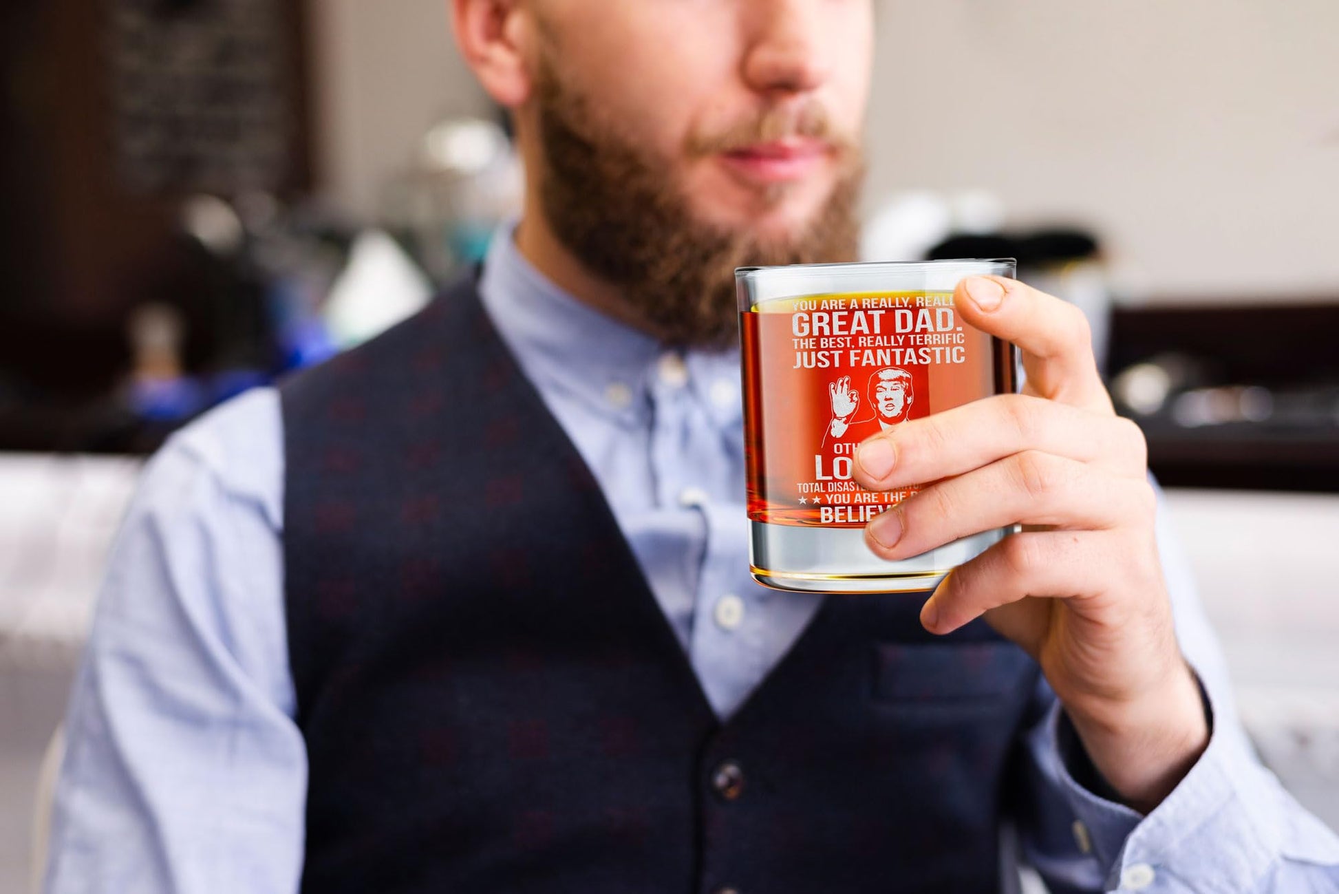 - XMAS GIFTS FOR DAD WHISKEY GLASSES - This awesome fathers day gifts - Best Dad Ever Gifts - This glass will keep the happy, memorable, warm and joyful moments with your family and loved one.