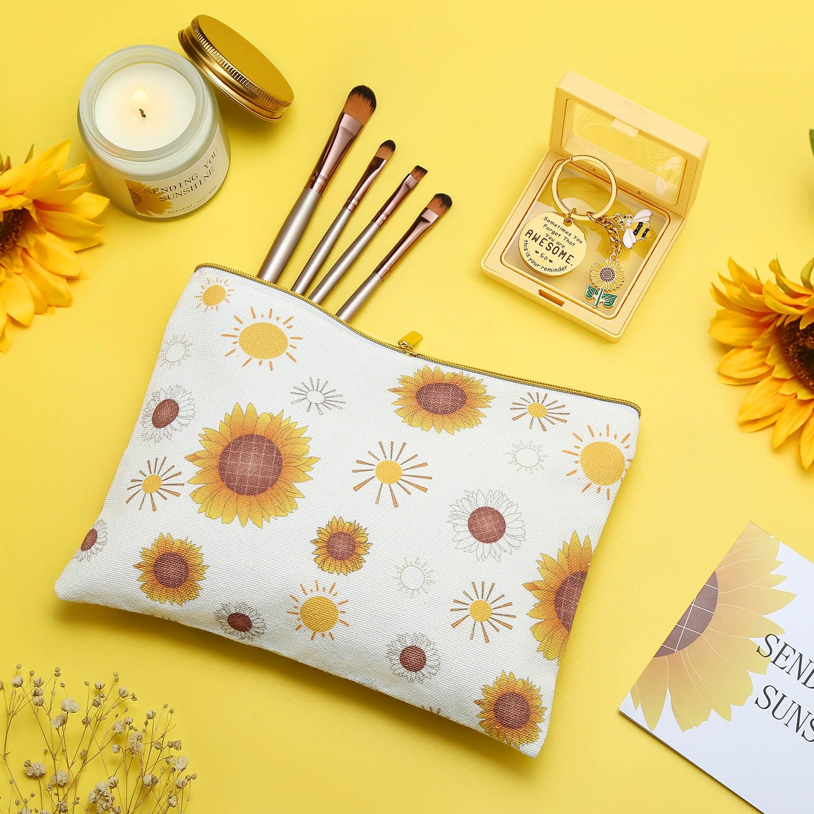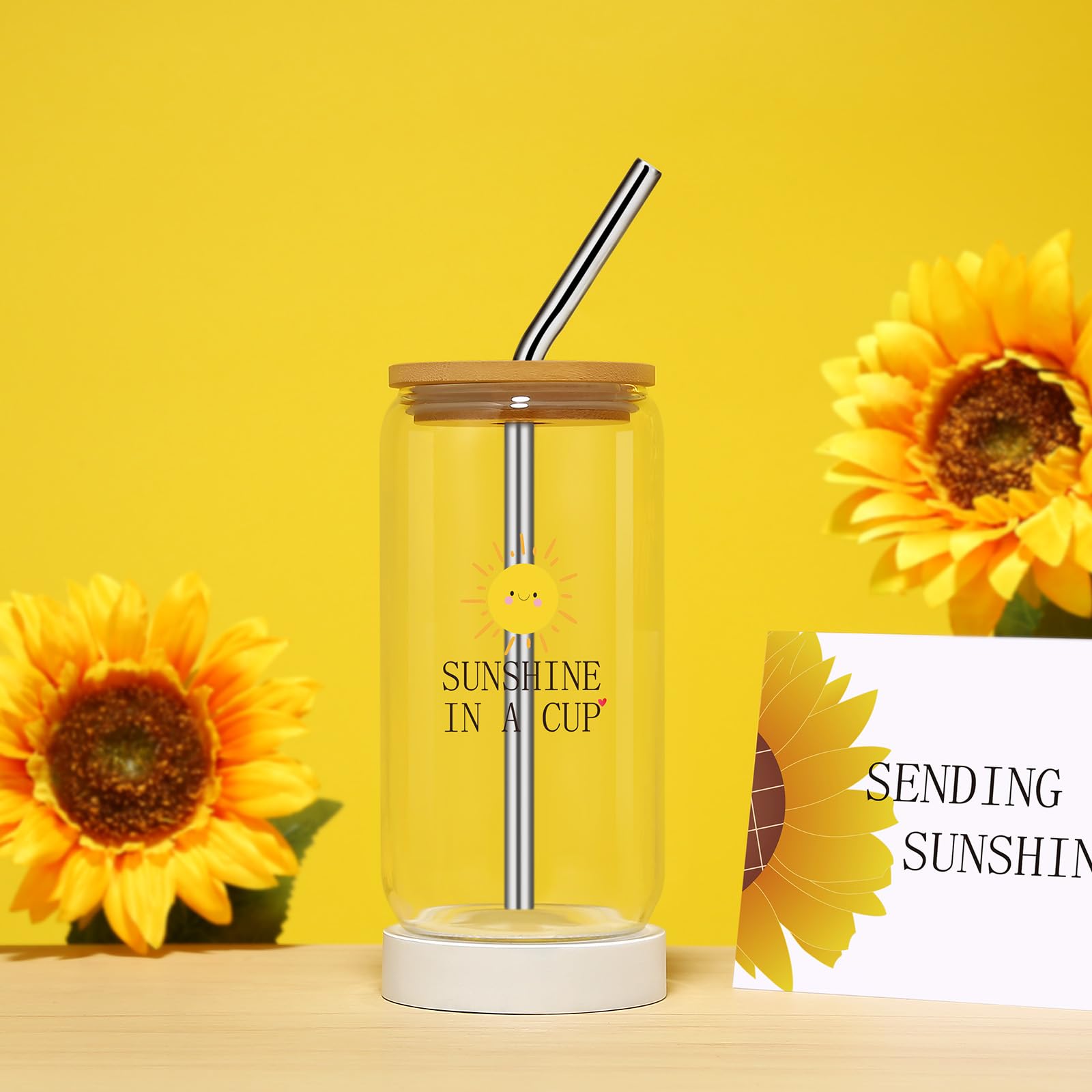 - 【Intimate Self Care Gift for Women】Indulge her senses with a 39 x59 inches Sunflower Blanket,a 16oz Glass Tumbler with bamboo lid and straw, featuring a whimsical quote, 'A Cup Of Sunshine For You.' Alongside, find a soft socks, 1 * scented candle,1* cute sunflower keychain, 1* cosmetic bag, 1* heartfelt greeting card, 1 * bath bomb, 1 * scented natural soap, Each item is meticulously selected to bring joy and relaxation to her day.
