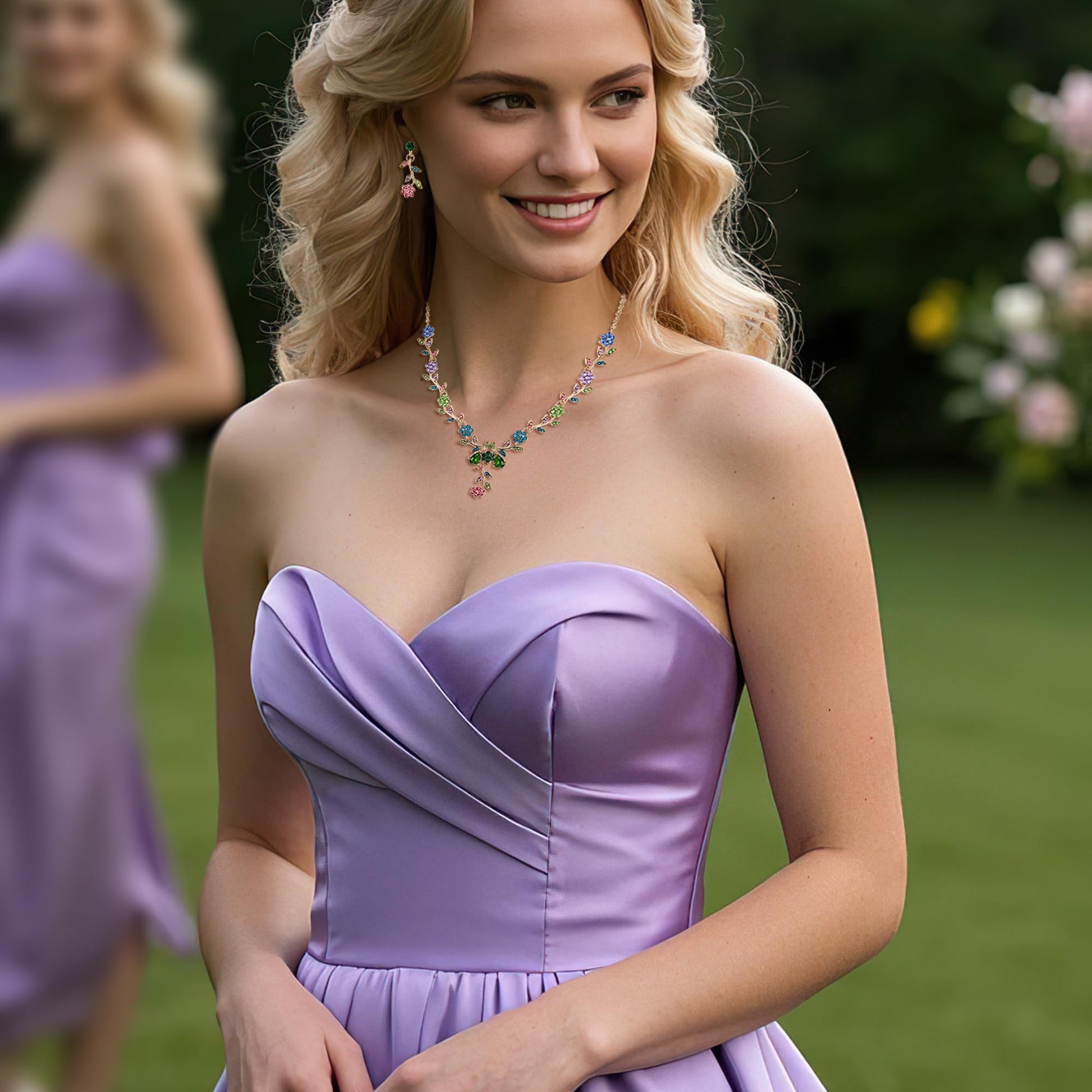 BriLove Women's Wedding Jewelry Leaf Cluster Flower Crystal Dangle Earrings Pendant Necklace Set for Bridal Multi Colour Gold-Tone