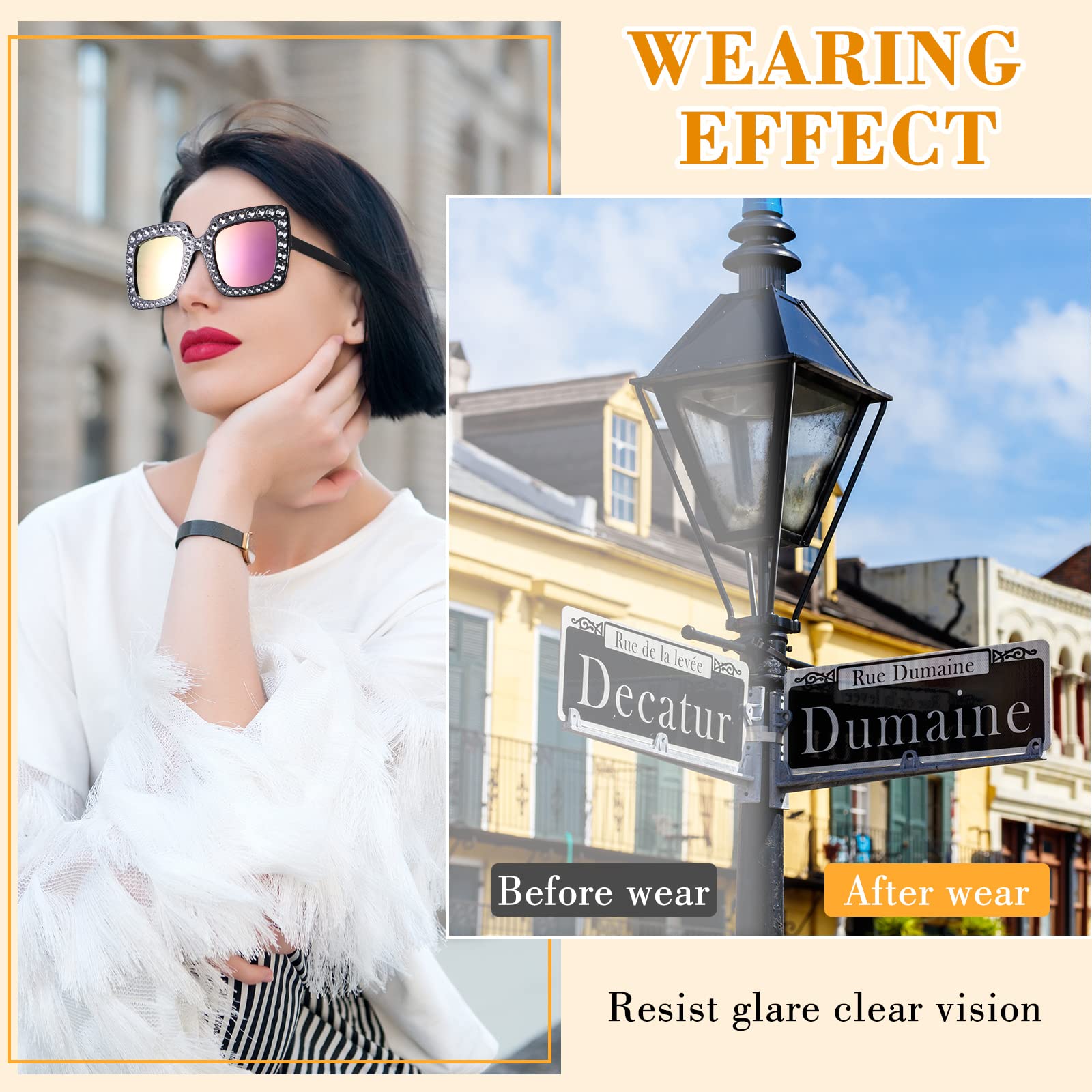- Block Glare, Relieve Eye Fatigue: the lens of square rhinestone sunglasses made of quality material, clear vision and true colors, which can block glare, thereby reducing eye fatigue, with 24 pcs lenses, stylish and retro, suitable for most face shapes