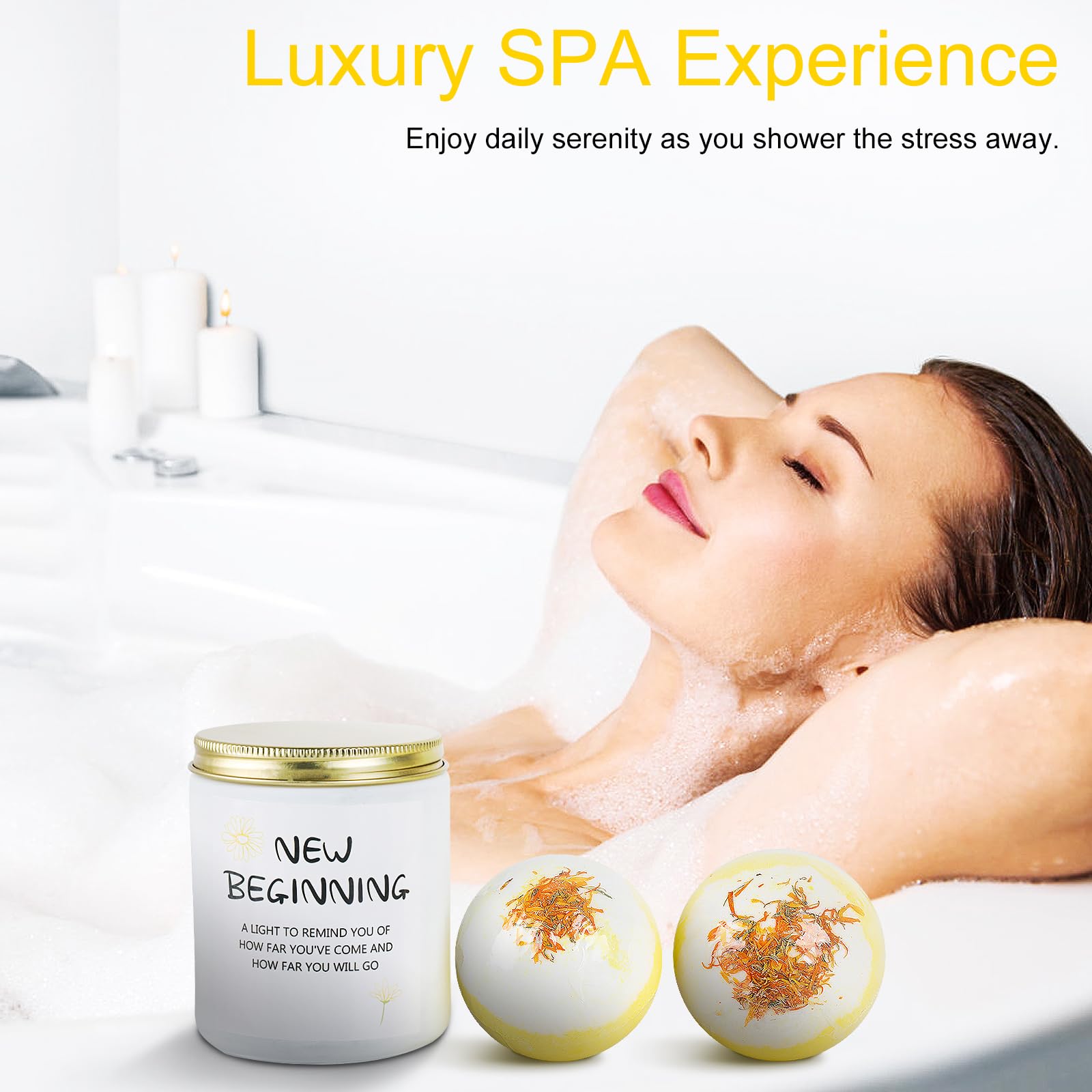 - 【Gifts for Motivation & Relaxation】The new beginnings gifts for women set can bring brightness to someone as they embark on a new journey, allowing them to start a new job and enjoy a wonderful day. Scented candle and bath bombs allow them to have good leisure and relaxation after work, feeling the care and kindness of their colleagues.