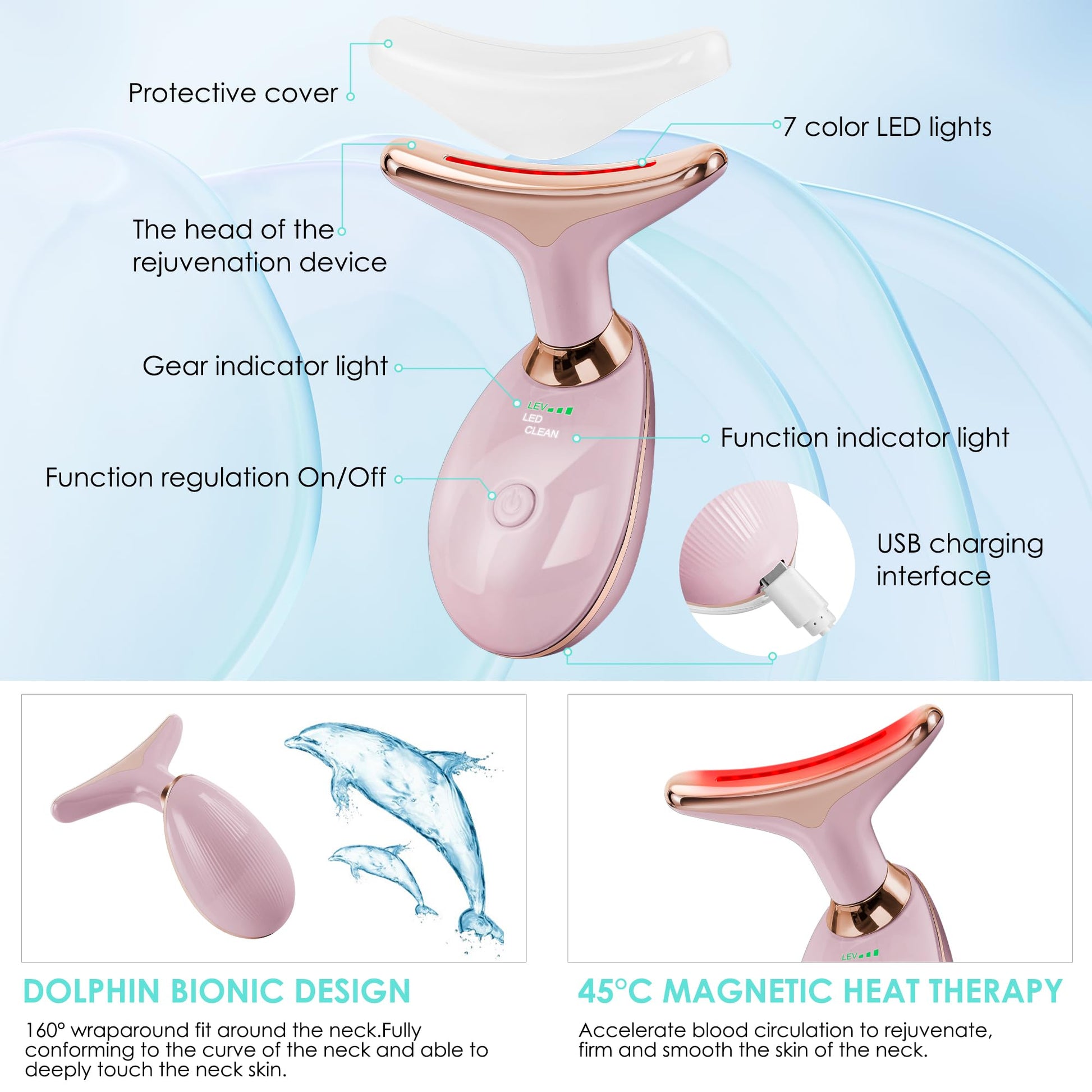 Facial Massager Red-Light-Therapy-for-Face and Neck, Face 𝖲 culpting Wand with 7 Color - Birthday, Christmas, Mothers Day, Valentines Day Gifts for Her Women Mom Best Friend Wife Teacher (Rose Gold)