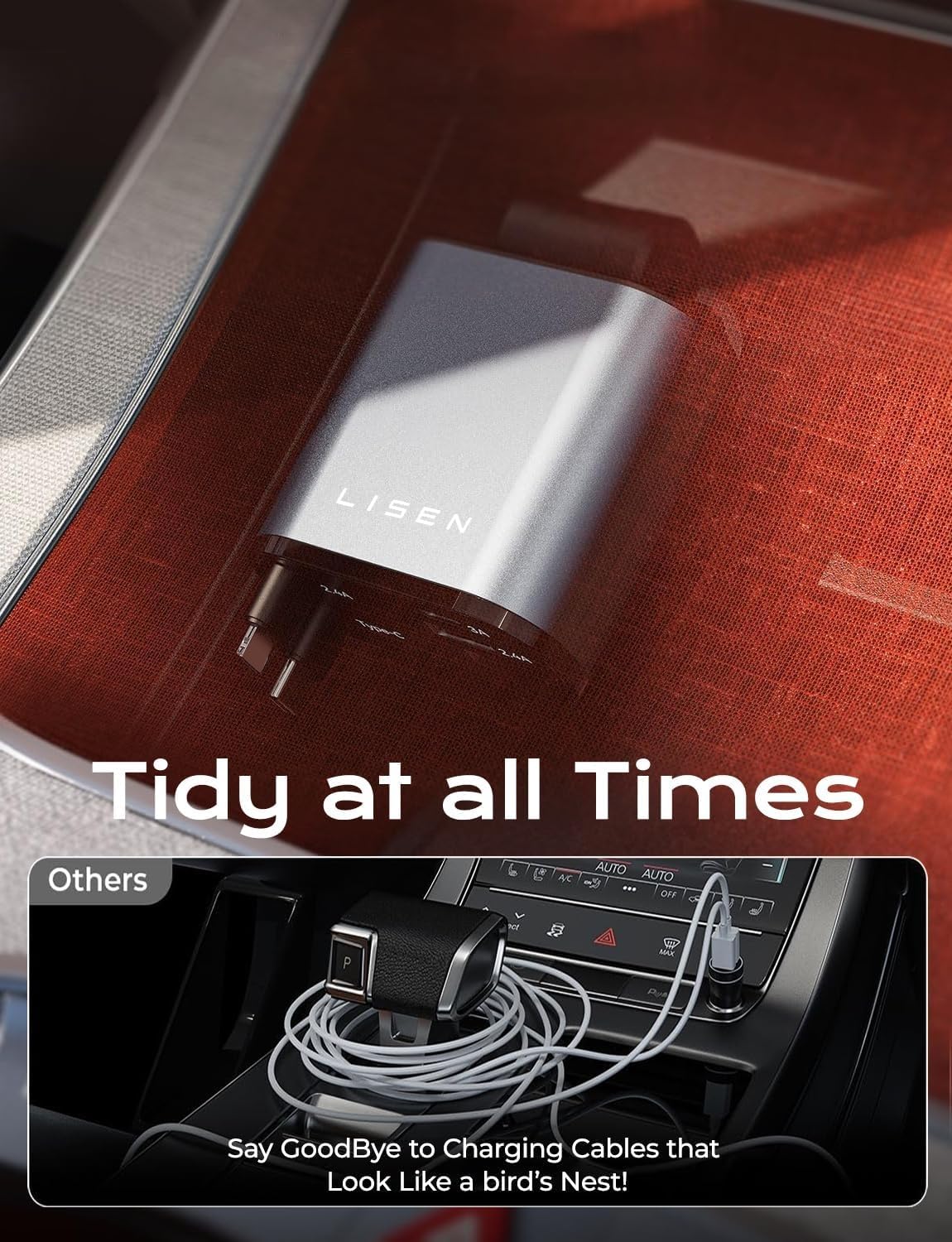 - Featuring dual USB ports and a retractable cable, the LISEN 4 in 1 Charger offers a clutter-free solution for charging multiple devices. Perfect for truck enthusiasts or as a thoughtful gift for drivers, it supports Android and iPhone users, including fast USB-C charging for devices like the iPhone 16 Pro Max. Keep your vehicle organized while ensuring efficient power delivery for all your tech. This is a standard 12V car charger ONLY for charging devices (USB power supply). It does NOT support CarPlay, Bluetooth, or data transfer. Compatible with most phones, tablets, and small electronics