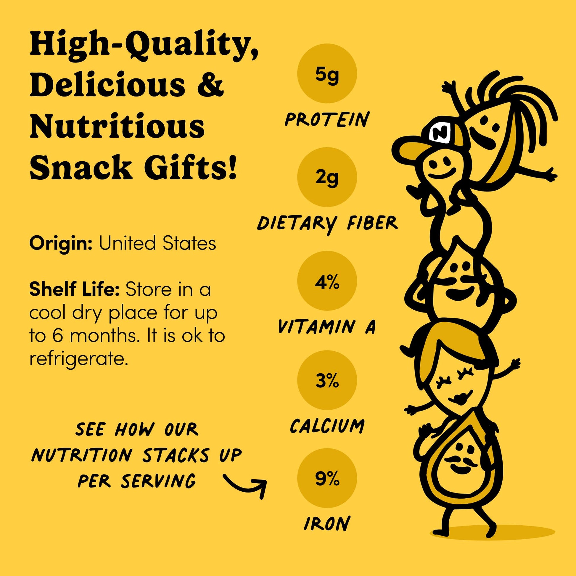 - Gifts for Every Occasion: Tasty and rich in protein, fiber, iron and other nutrients, our snack samplers make great gifts for any occasion, from holidays and birthdays to corporate events and graduation parties