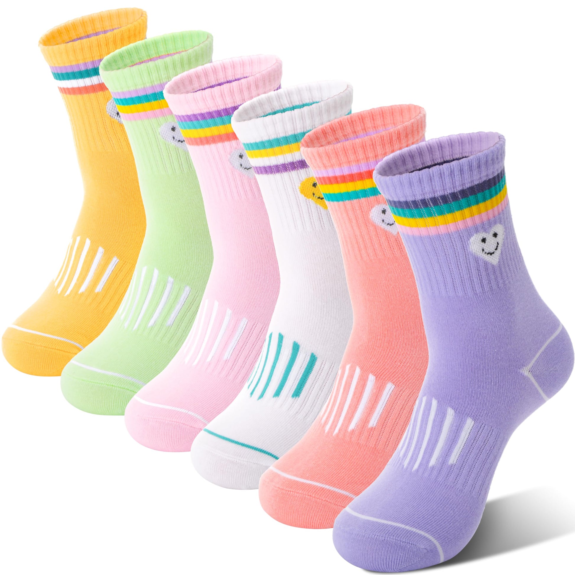 - Package: 6 pairs of athletic sports socks tailored for active young girls. The assortment of colors adds a playful touch to any outfit, enticing kids to wear them with enthusiasm