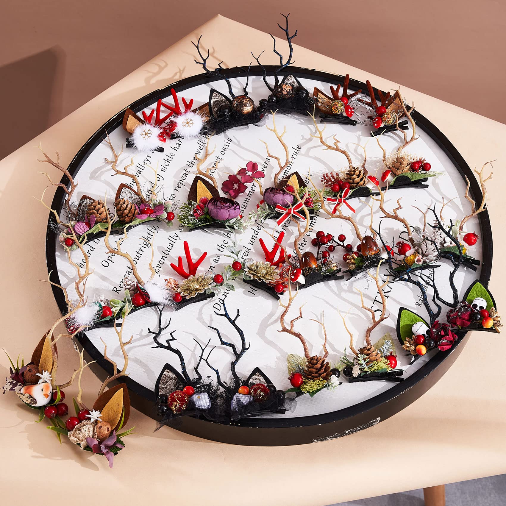 - 🍅 The Hallowee hair clips made by decorated antlers ,Headband,Flowers, berry,pine cone,leaf,with special reindeer design, to create festive atmosphere.🌲