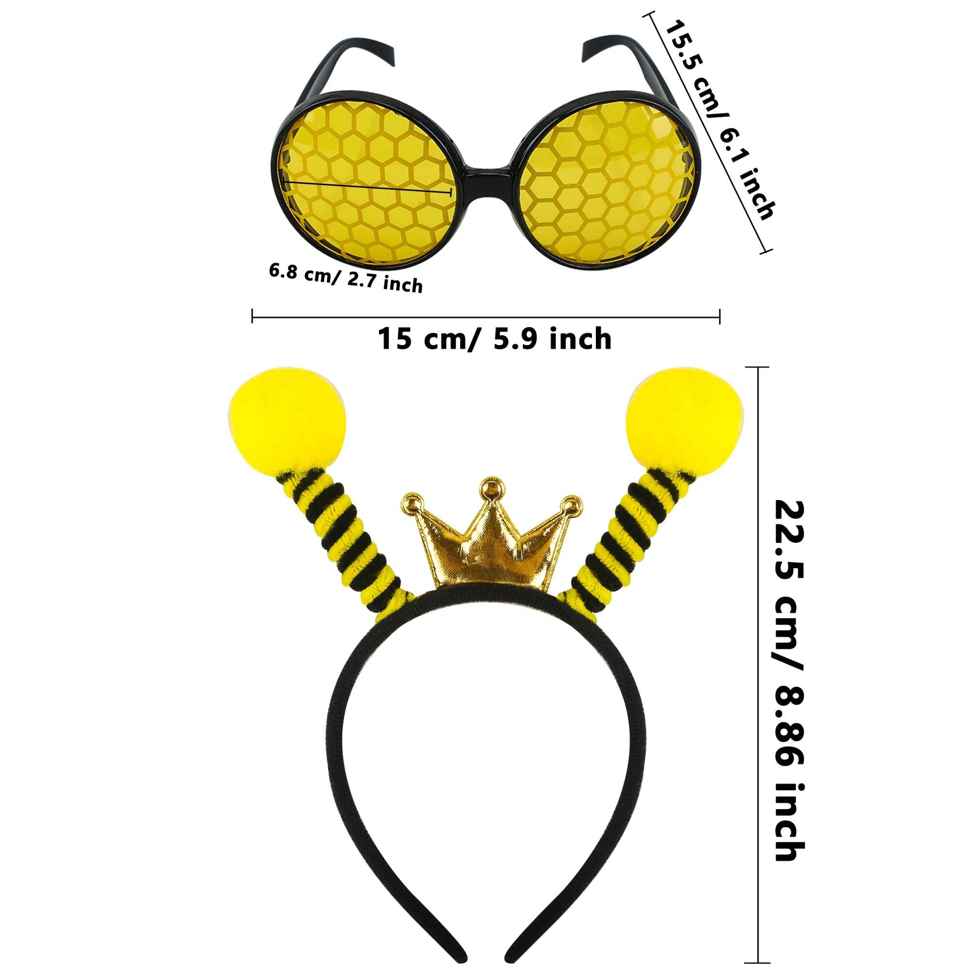 - Size detail: the lens of the bee glass measure about 6.7 cm/ 2.63 inches, the leg of the glasses is about 15.4 cm/ 6.06 inches, and the bee antenna hair band measures approx 24 x 11.5 cm/ 9.4 x 4.5 inches, proper size can easily fit most, the full head accessories in one set can complete your Halloween Bee Costume