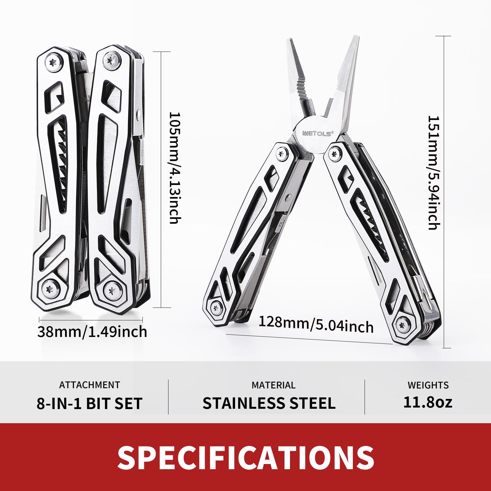 - 【Safe Design & Reliable Warranty】Self-locking design ensures safe use and storage;Butterfly opening makes it easy to pull out and use. Comes with a hard-wearing edc pouch for easy everyday carrying.WETOLS multitool offer a limited lifetime warranty, except for any incidental or consequential damages or injuries.Do not hesitate to contact us when you encounter any issues about this tools