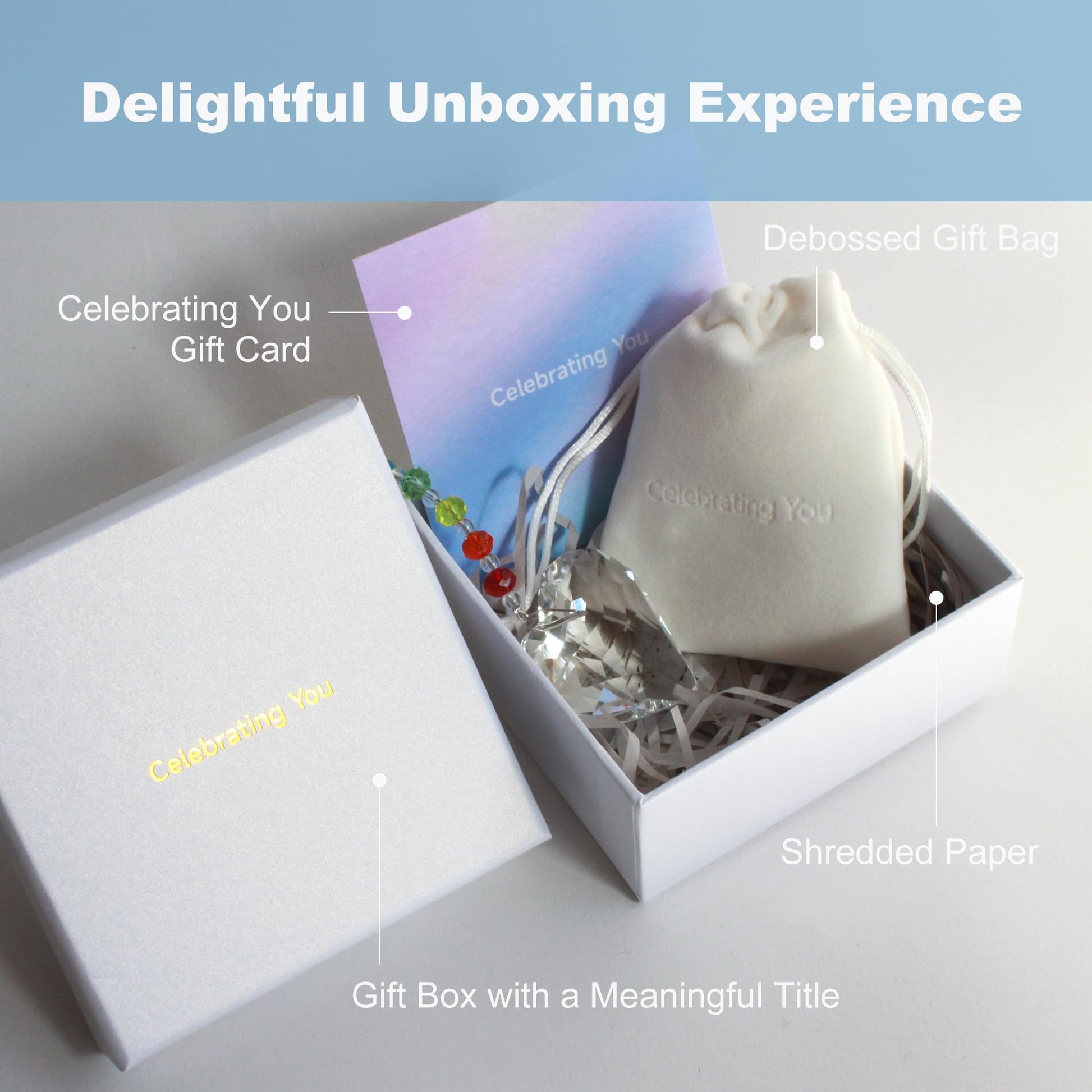 • Celebrate Your Loved One For Just Who They Are - Symbolizing your cherished one's kind heart, dazzling spirit, and unique glow, this gift features a stunning 45 mm crystal heart suncatcher, paired with a heartfelt message in a gift card, elegantly presented in a meaningful gift box. As sunlight filters through, it casts sparkling rainbows, expressing 'a celebration of the person you are and the person you are working to become'.