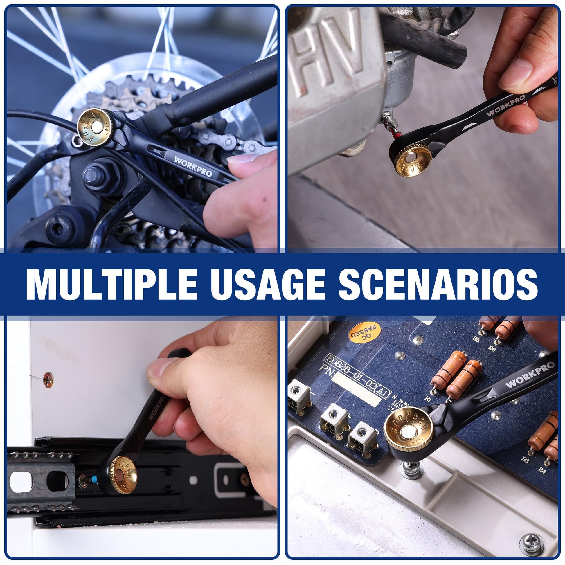WORKPRO 34-Piece 1/4" Mini Ratchet Wrench, 72-Tooth, Right Angle Screwdriver Mens Gifts, 90 Degree Offset Ratcheting Screwdriver Pocket Mini Low Profile Ratchet Wrench Bit Socket Set for Tight Space