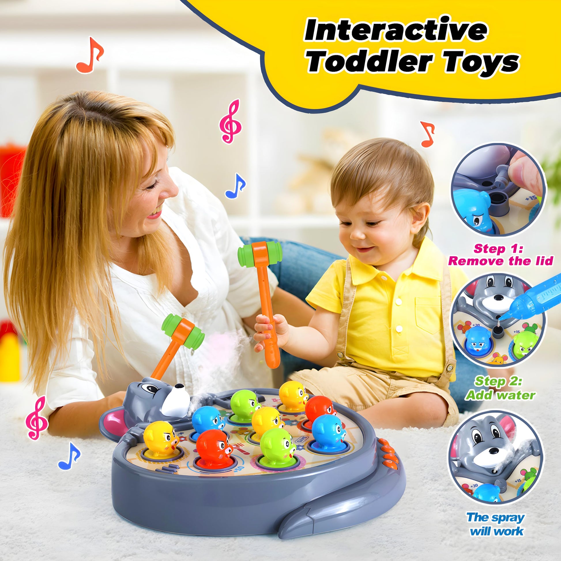 Yerloa Game for Toddlers 2 3 4 5 Year Old Boy Toys Christmas Unique Gift Kids Toys Ages 2-4 4-6 2-3 3-5 4-8 Interactive Learning Educational with Spray 2 Hammers, 5 Modes, 9 Music & Light