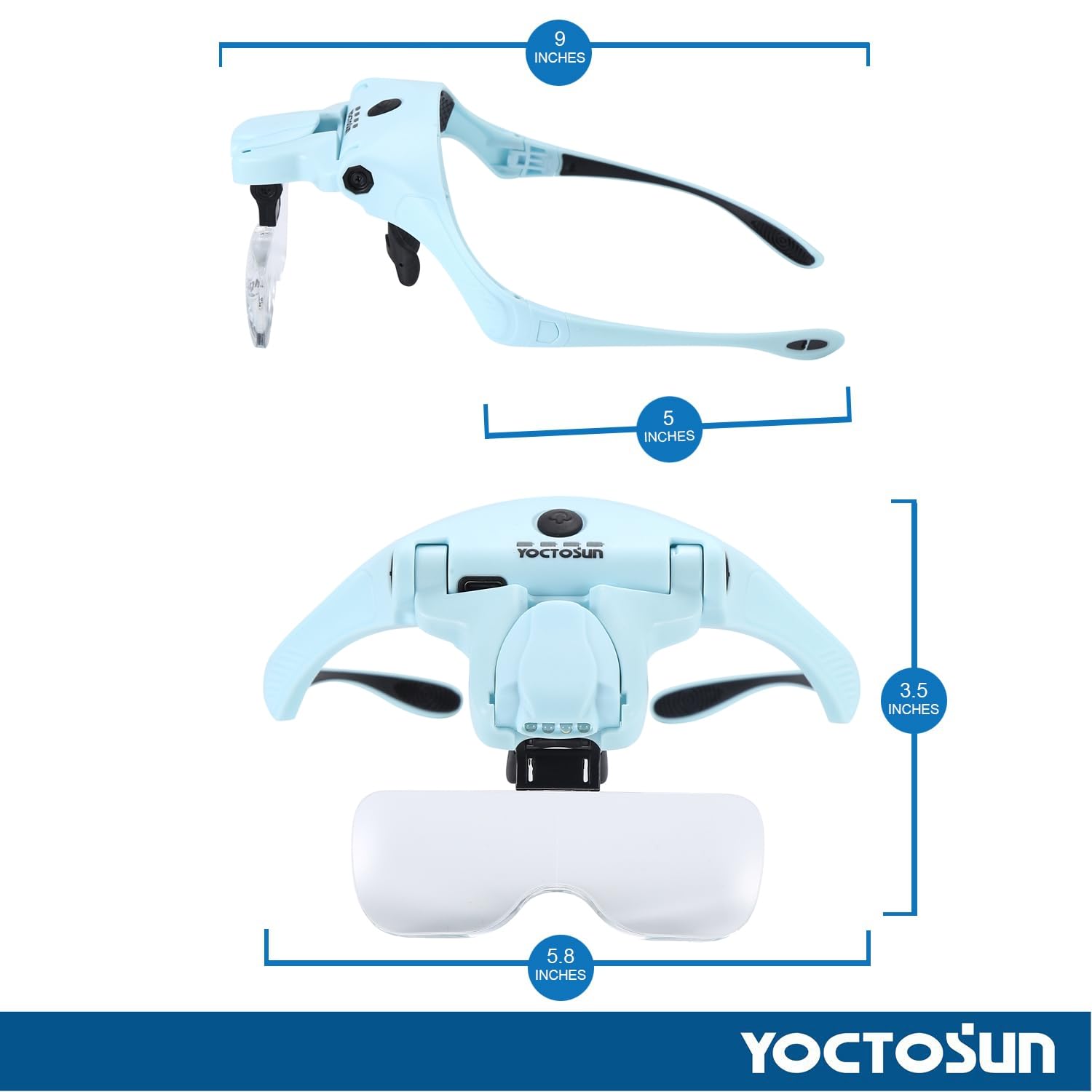 YOCTOSUN Magnifying Glasses with Light for Close Work, Head Magnifier with 4 LED Lights and 5 Detachable Lenses 1X to 3.5X,Rechargeable Hands Free Headband Magnifier Glasses for Crafts, Hobby
