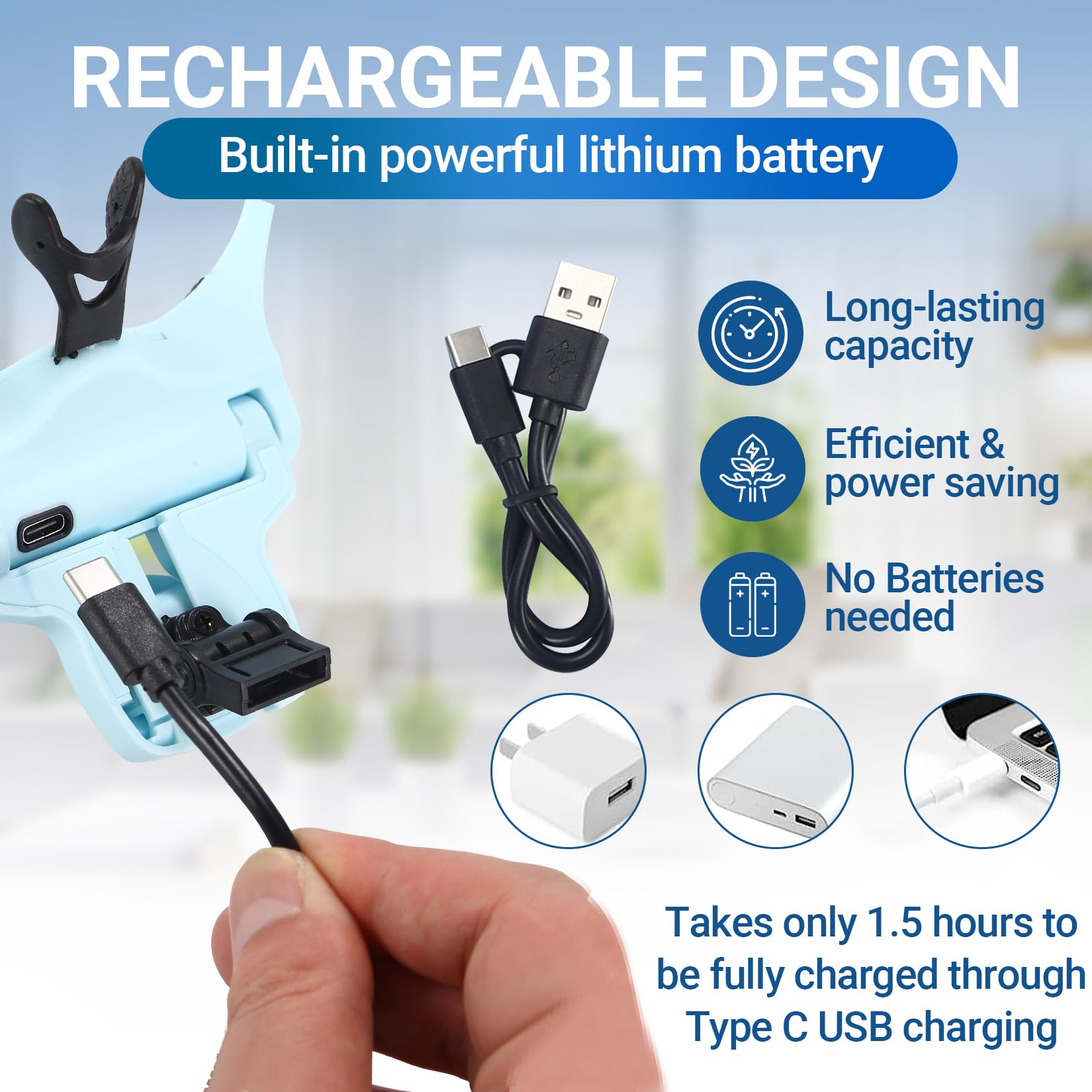 • USB Charging Design: This magnifying glasses with light is equipped with a rechargeable built-in lithium battery and comes with a USB Type-C cable, simply plug the cord into the magnifier and the other end into the slot of a USB power source(such as a USB wall charger, a cell phone charger or a power bank, not included) and it automatically charges. Save money and energy while enjoying long lasting bright light. You will never need to buy batteries again!