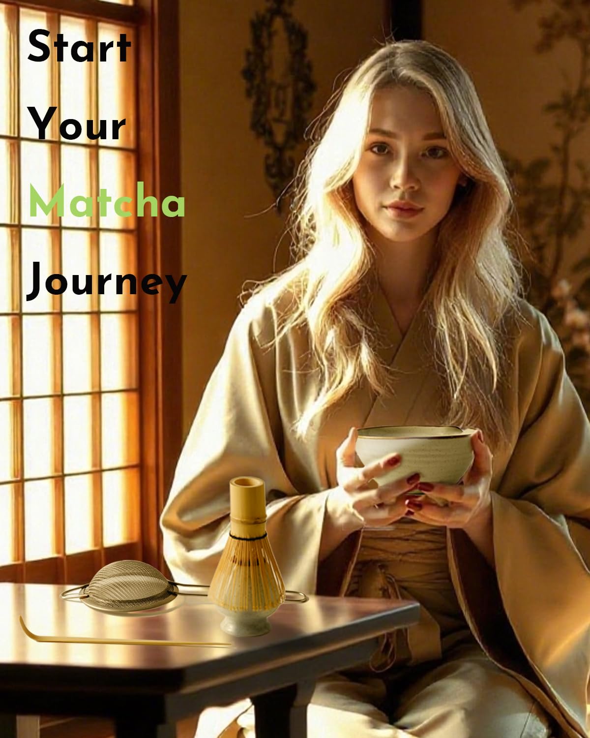 Zzlright Matcha Whisk Set,Matcha Set,Matcha Kit,Matcha Bowl with Spout,Scoop,Sifter,Bamboo Whisk,Chasen Holder,Unique Gifts for Women Grifend,Gifts for Christmas, Birthday,Halloween